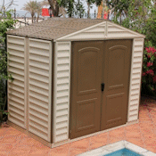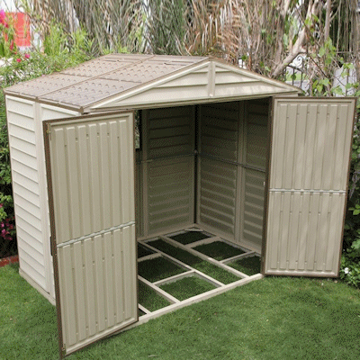DIY self install DuraMax plastic vinyl sheds are available in a wide range of sizes, optional